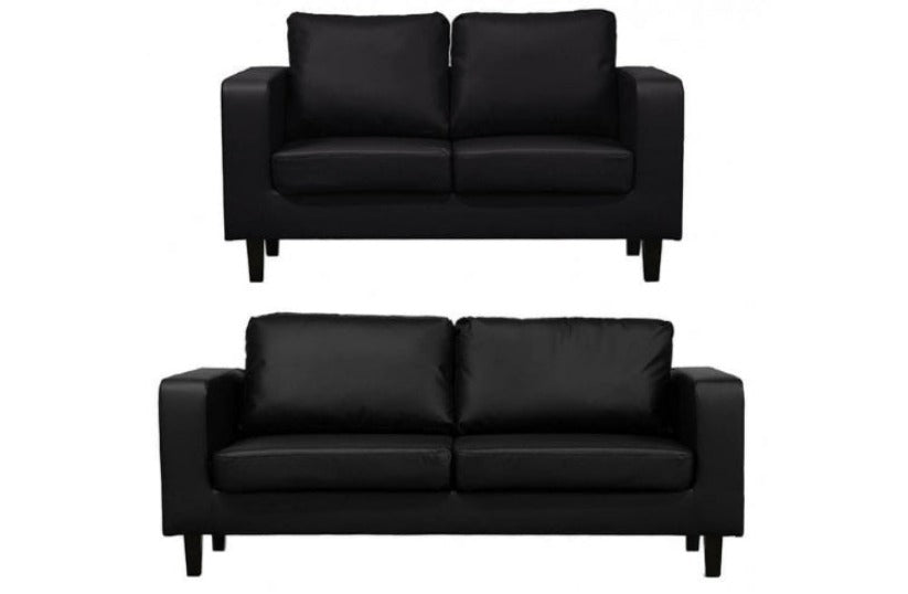 Order your Box Black Faux Leather 3+2 Sofas Set from RK Interiors, UK, today and enjoy the perfect combination of comfort, design, and affordability!