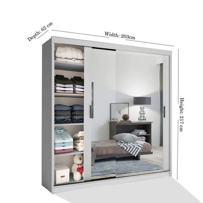 - Optimal Size: With its 203cm width, this wardrobe is perfect for mid-sized bedrooms, offering generous storage without dominating the space.