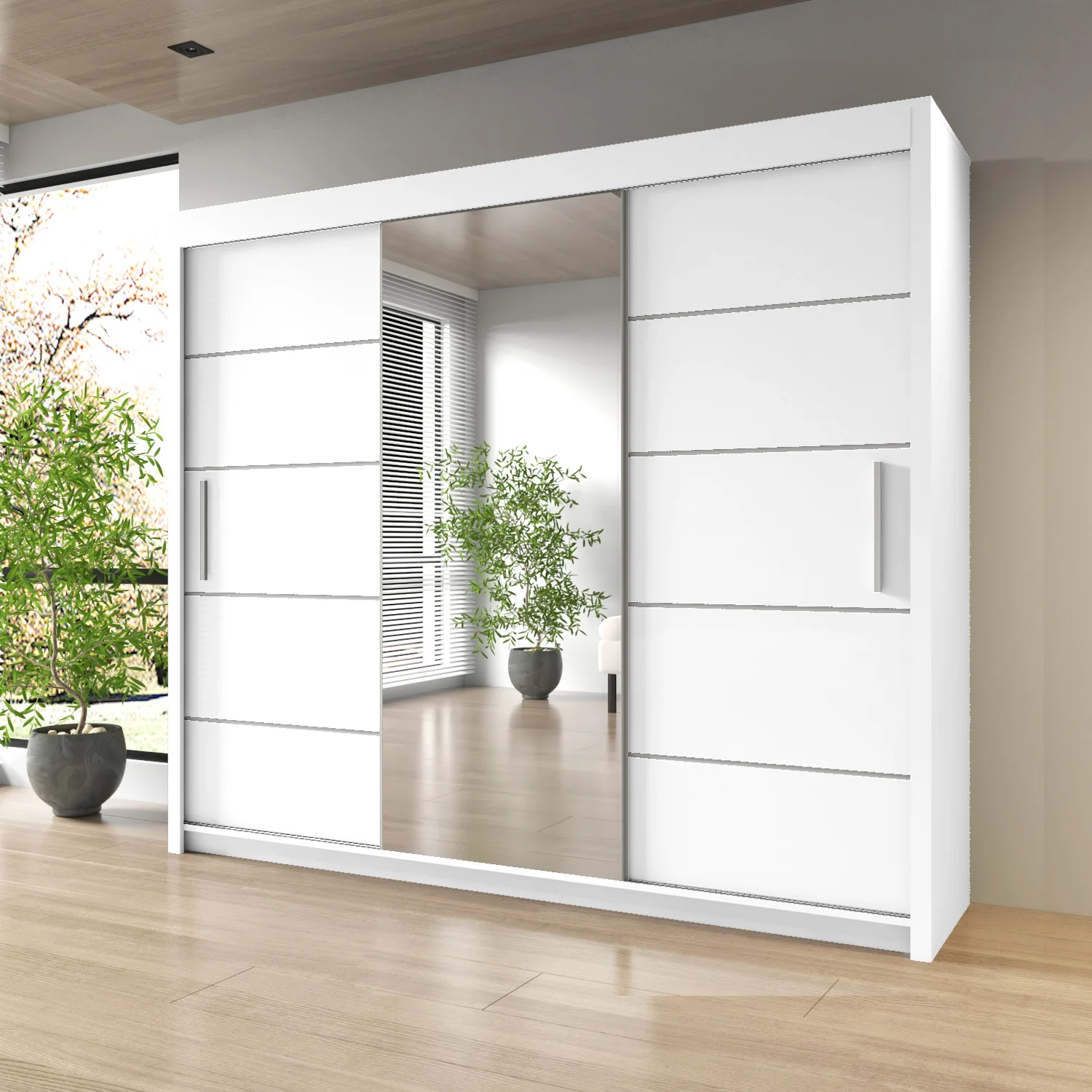 - Integrated full-length mirrors for added style and functionality.