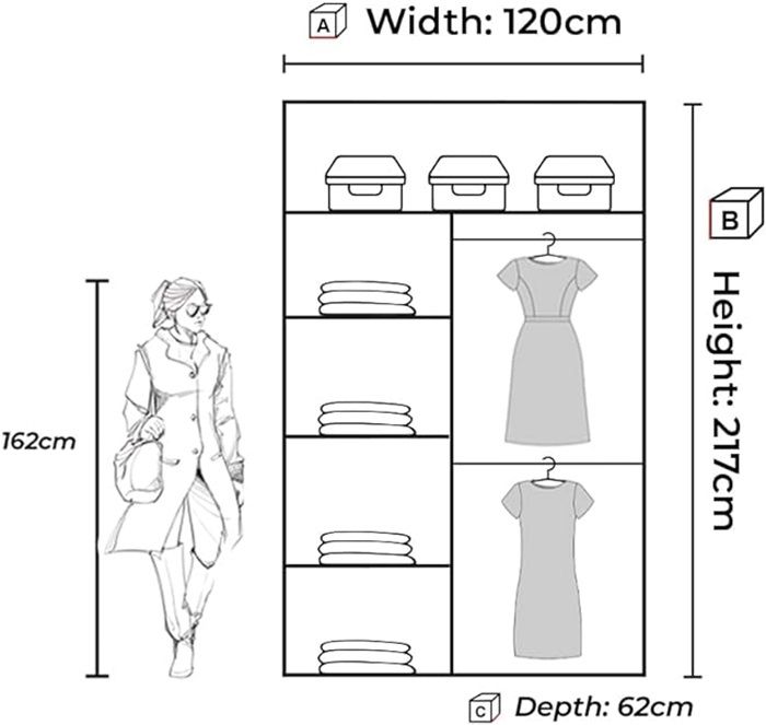- Dimensions: 120cm (Width) x 200cm (Height) x 62cm (Depth).