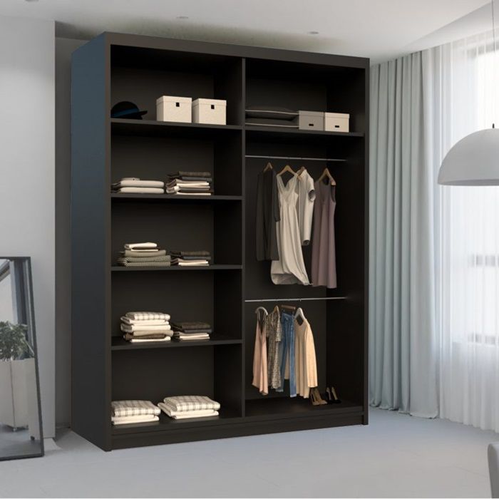 - Interior layout includes adjustable shelves and a robust hanging rail.