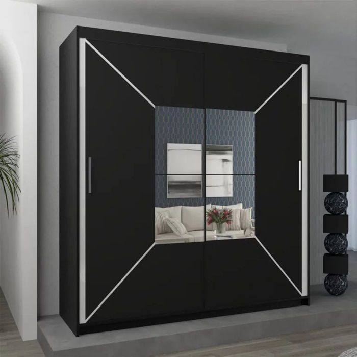 The wardrobe features full-length mirrored sliding doors, which not only save space but also reflect light to create an illusion of a larger and brighter room. The sleek and minimalist design ensures it seamlessly blends with your existing furniture, making it a versatile and stylish addition to your home.