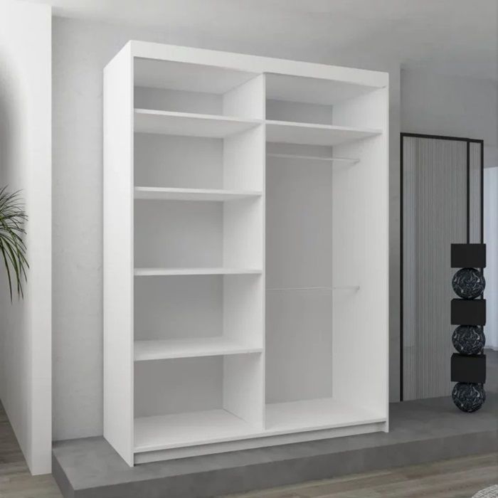 The wardrobe features full-length mirrored sliding doors, which not only save space but also reflect light to create an illusion of a larger and brighter room. The sleek and minimalist design ensures it seamlessly blends with your existing furniture, making it a versatile and stylish addition to your home.