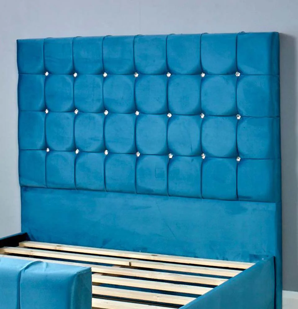 The Amsterdam bed is a perfect opportunist. It brings change that truly desires it. The Chesterfield design with the velvet fabric are characteristics that make this bed wonderful. Customers who have a strong desire for comfortable sleep and function. Then this bed is the best candidate they can hope for. The compact size with a high headboard is what makes it a must-buy. Quality plays a key role in diversity for this bed. That is why MJ Furnishing has gone to numerous lengths of providing products of great value. For this specific reason, the Amsterdam bed is the go-to solution. If you are searching for something which has a maximum potential of being the best. Double bed, Single bed, King size bed and Super king size bed Available. With mattress. with ottoman storage.